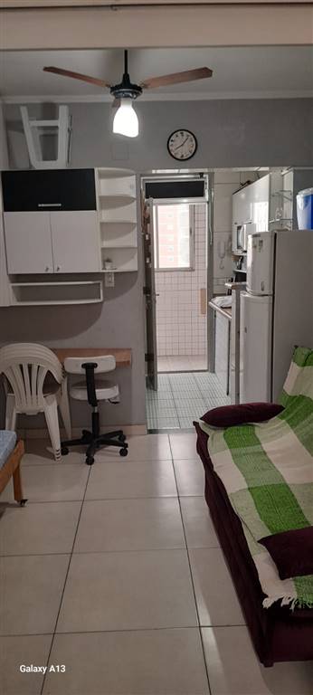 Apartamento com 40 m² de área útil, em prédio de frente para a praia, distribuído em sala, quarto, cozinha funcional e banheiro social. Sem vaga de garagem.
